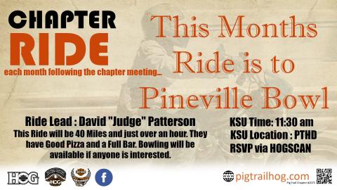 After the chapter meeting, we’re heading out on our monthly ride, and this one’s to Pineville Bowl!