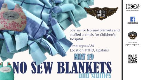 No-sew blankets and stuffed animals for Children's Hospital in Springdale on Sunday, May 19 at 9am at PTHD upstairs.