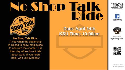 We are bringing back our No Shop Talk Ride, where we ride with PTHD Employees. Here we do not talk shop, we just ride!