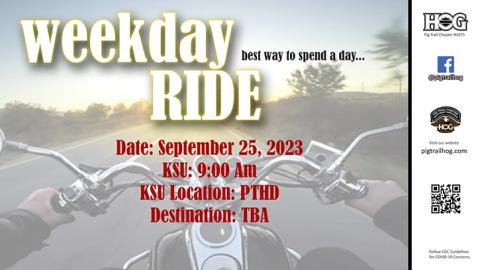 What better way to spend time during the week than a nice ride. Join us on this weekday ride and get away from the normal stress of the week.